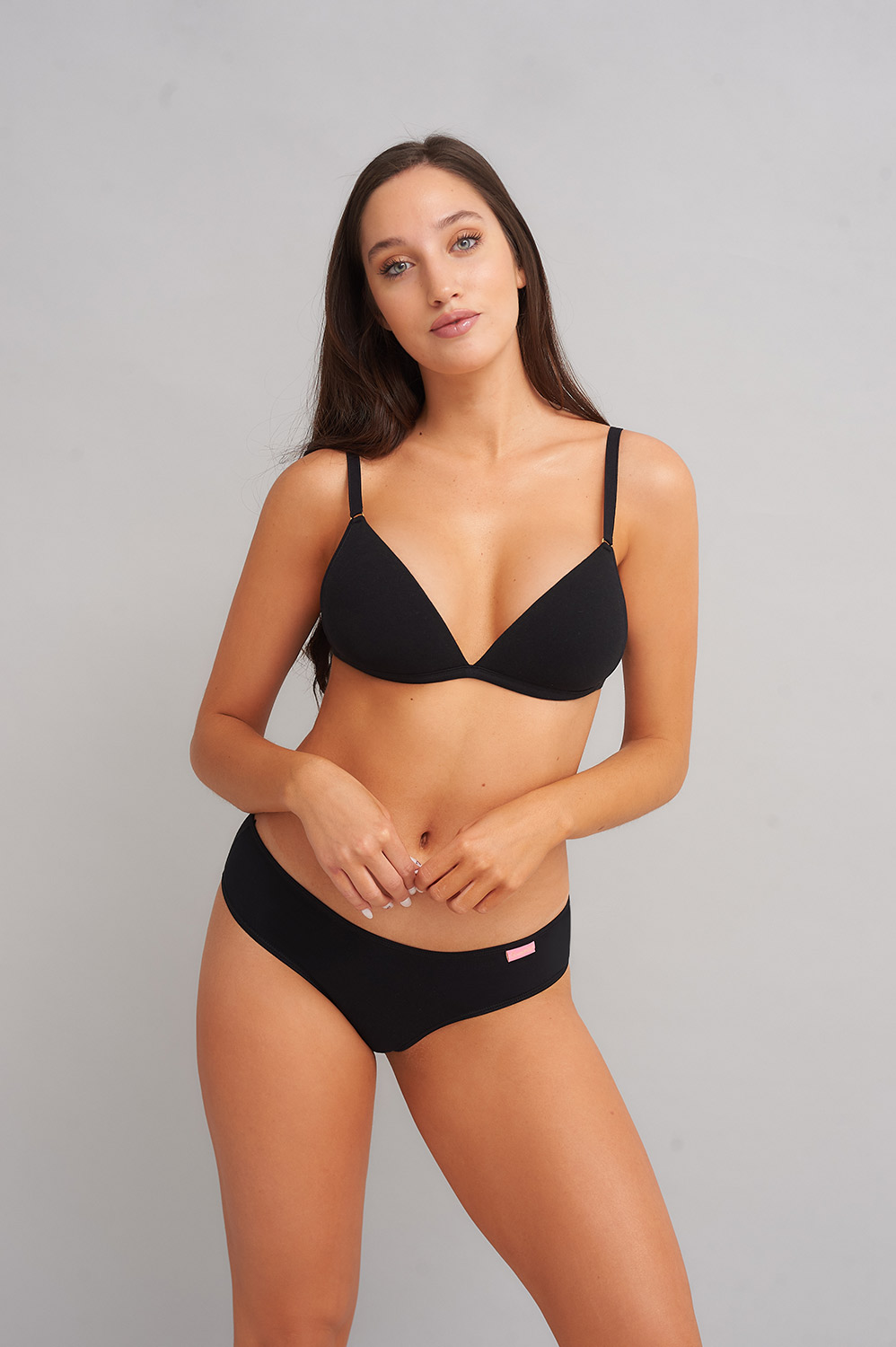 Material: Algodón y lycra para una sensación suave y elástica. Diseño: Triángulo con taza armada y culoteless para realzar tu figura.
